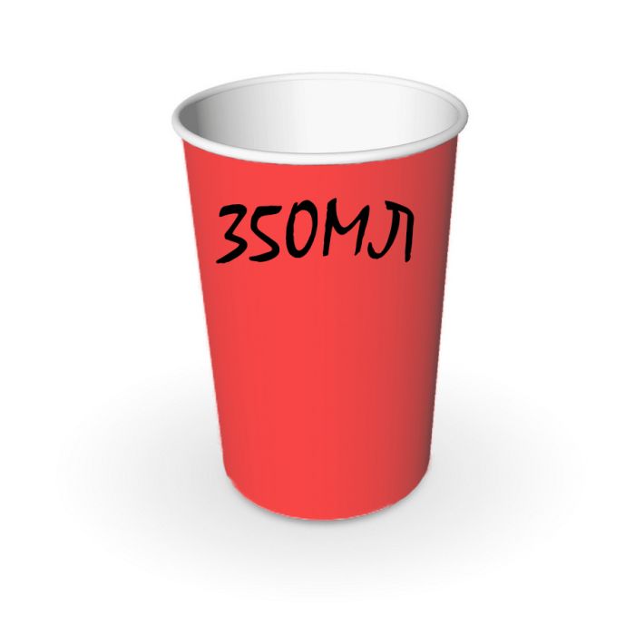 Бумажный стакан красного цвета для кофе, чая и других горячих напитков, объемом 350 мл. Красный стаканчик изготовлен из целлюлозной бумаги с односторонней ламинацией. Швы стакана надежно запаяны, что исключает подтекание напитка